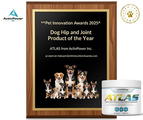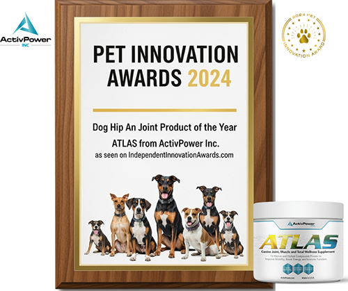 The revolutionary Atlas from ActivPowerCANIS is the only animal muscle and joint supplement of its kind. Our patented formula blends 16 all-natural ingredients that are rich in nutrients, vitamins and minerals with proven abilities to improve hip, back and joint mobility, restore energy and boost immunity in active and older dogs so they can live life at full power.